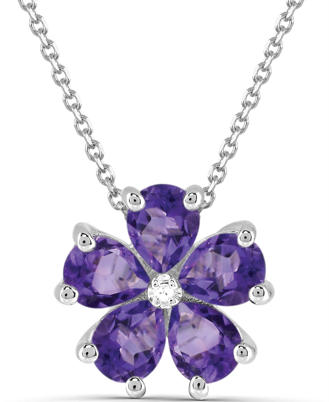Sterling Silver Amethyst and Diamond Flower Pendant
