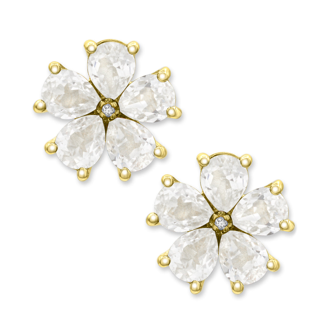 14K Yellow Gold over Sterling Silver Created White Sapphire and Diamond Flower Earrings